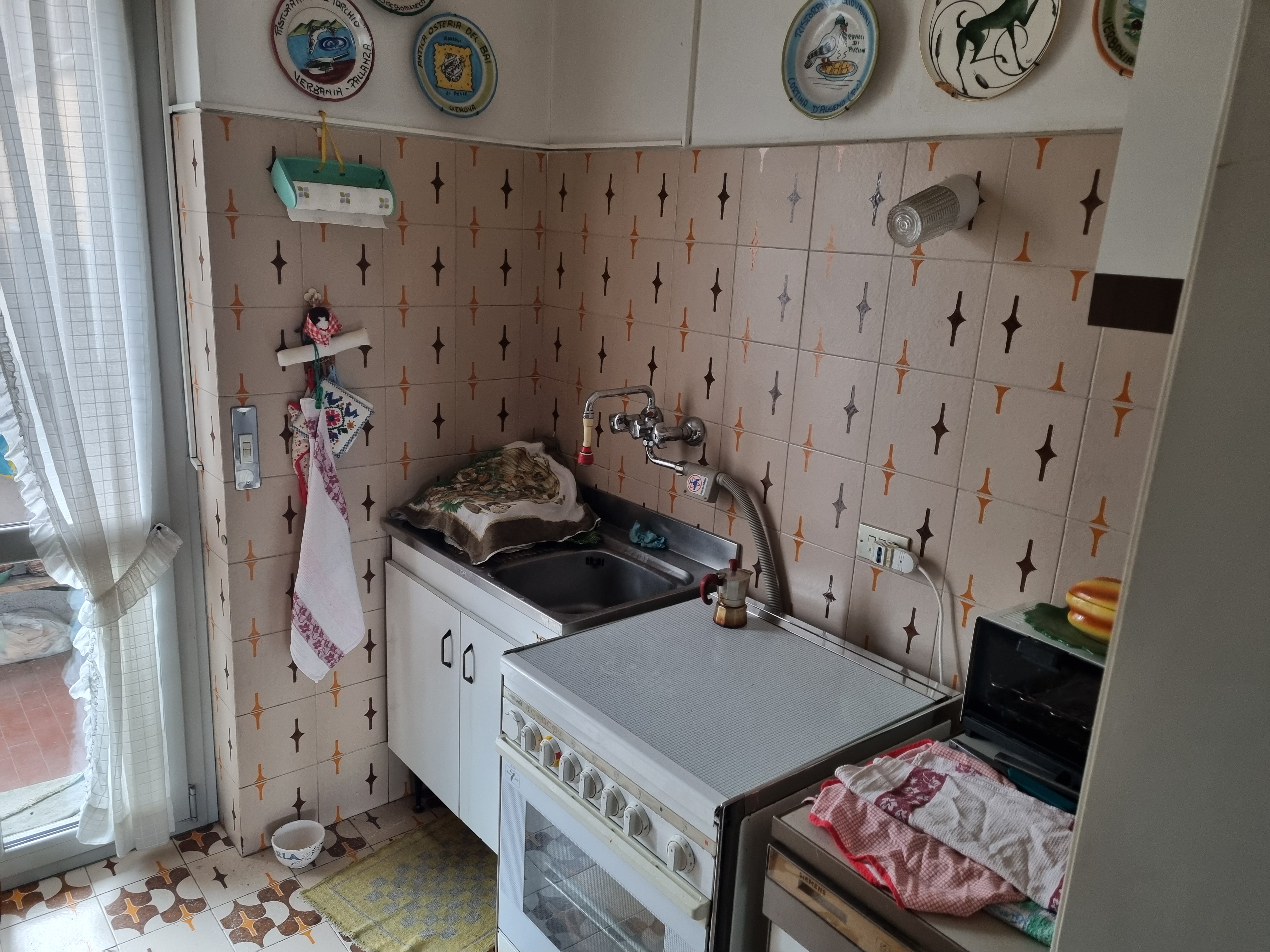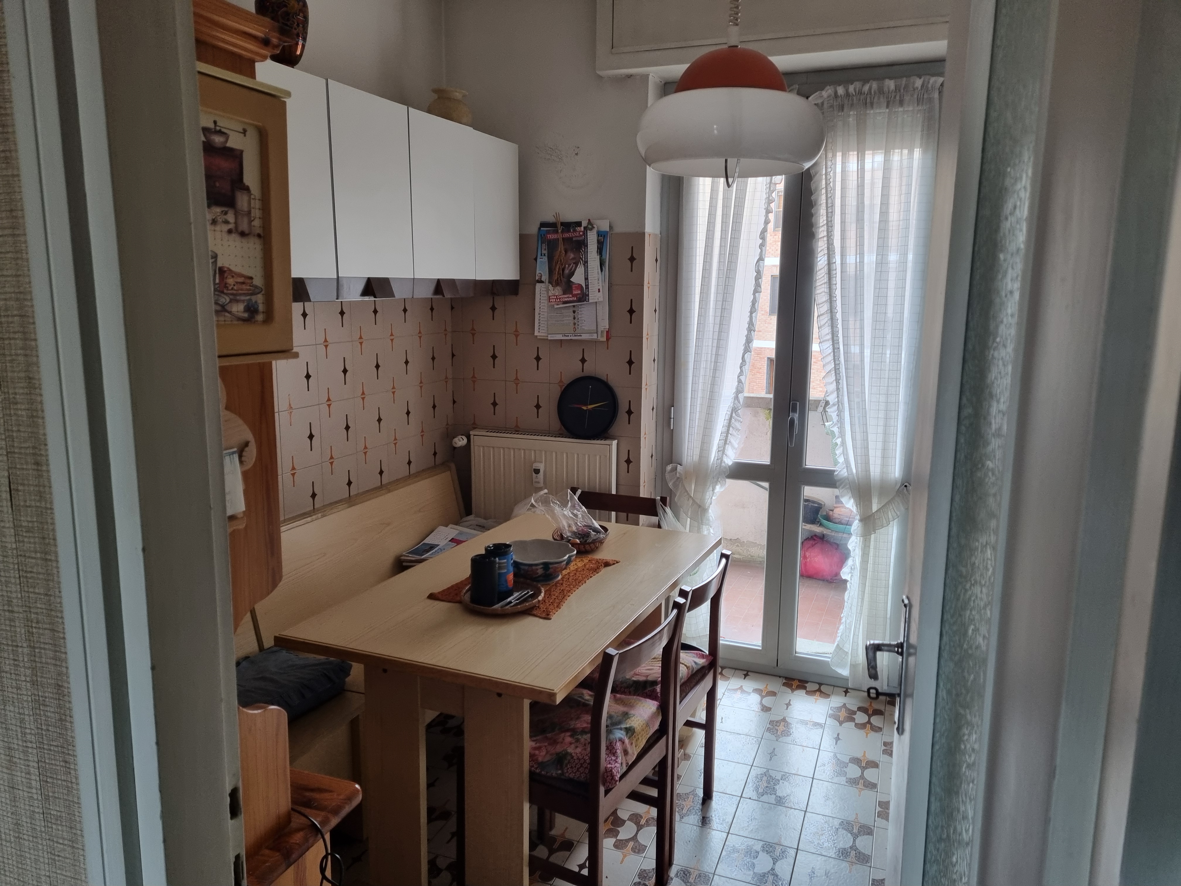 La cucina abitabile è servita da un bel balcone che si affaccia verso l’interno del complesso residenziale mentre il soggiorno doppio ha due balconi che si affacciano verso via Galvani, uno dei quali è in comune con la cameretta.