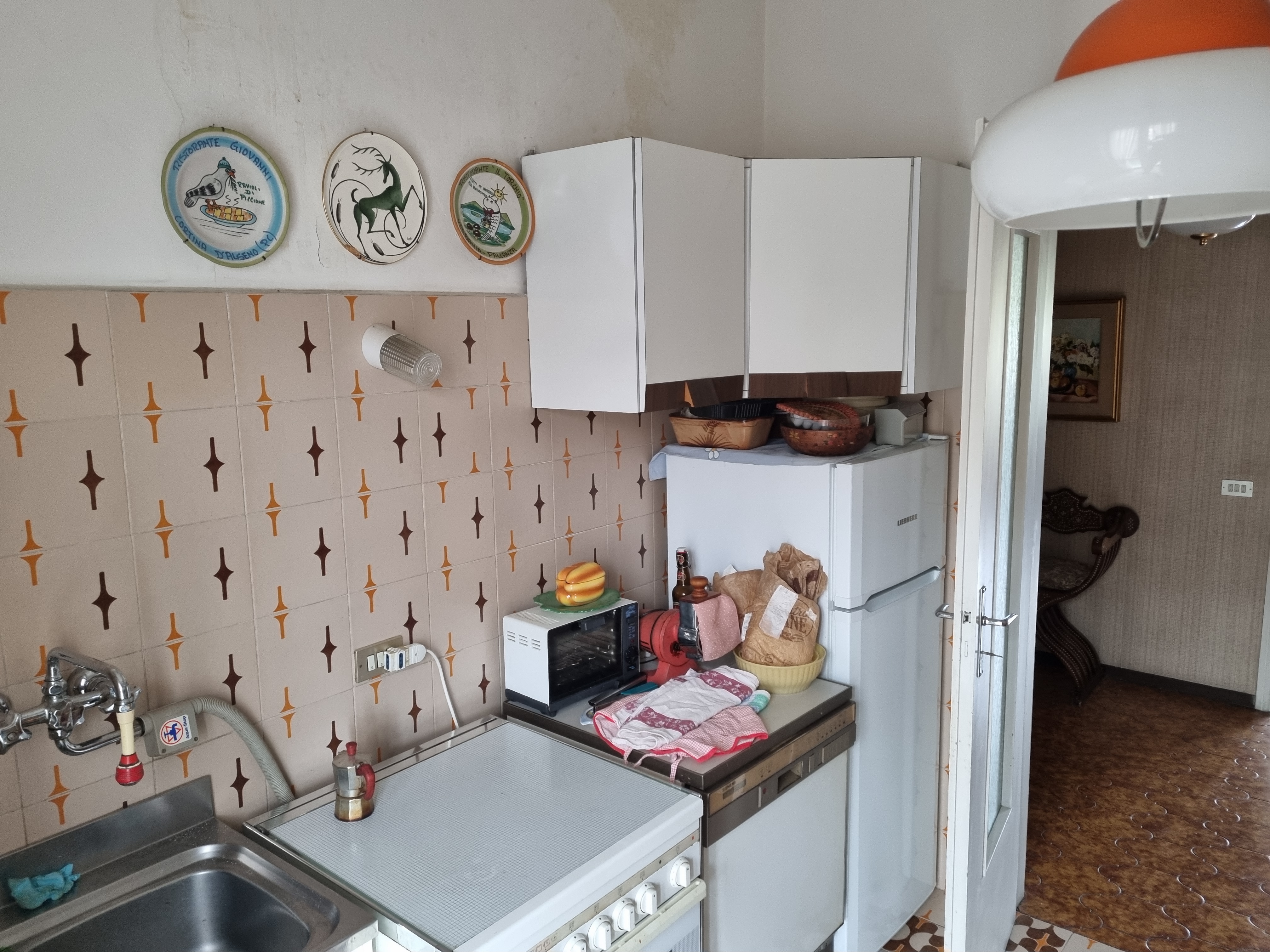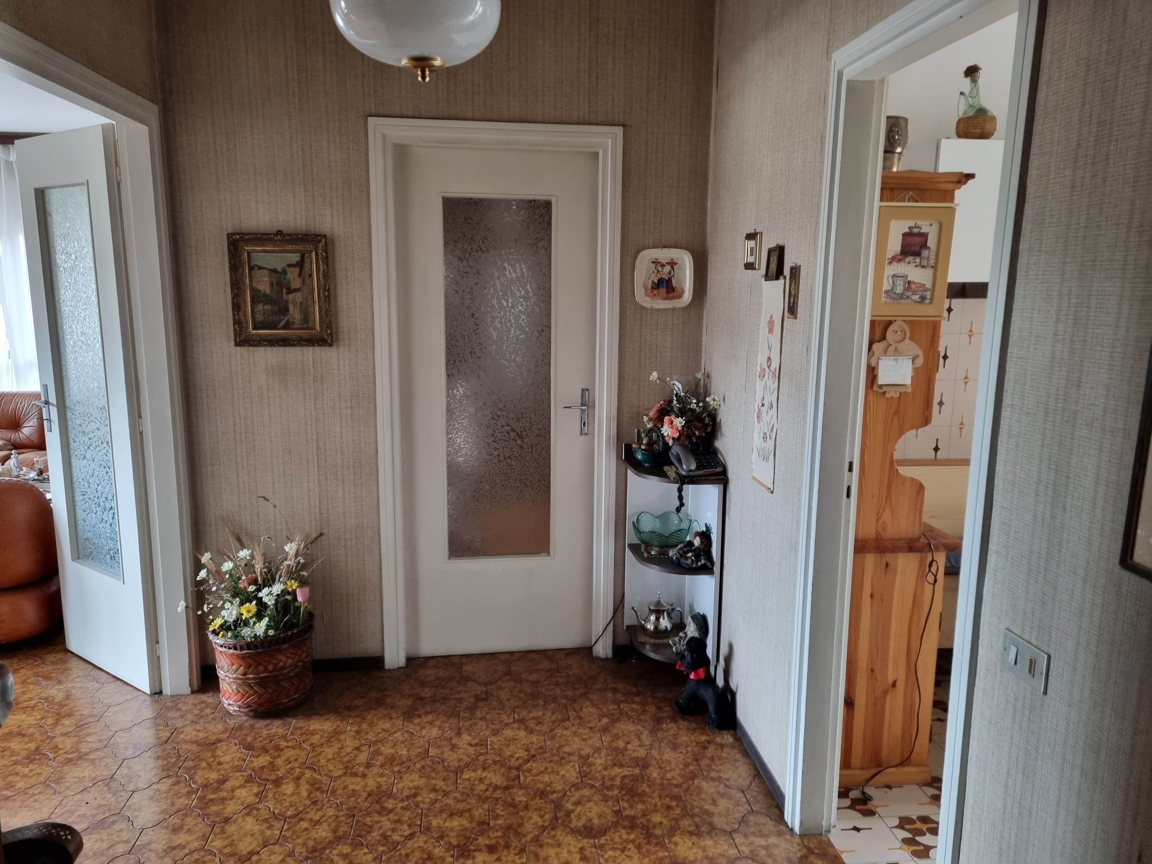 La composizione è classica con un bel ingresso da cui si accede a sinistra all’ampio soggiorno doppio mentre a destra si trova la cucina mentre un corridoio centrale porta verso la zona dei servizi e delle camere.